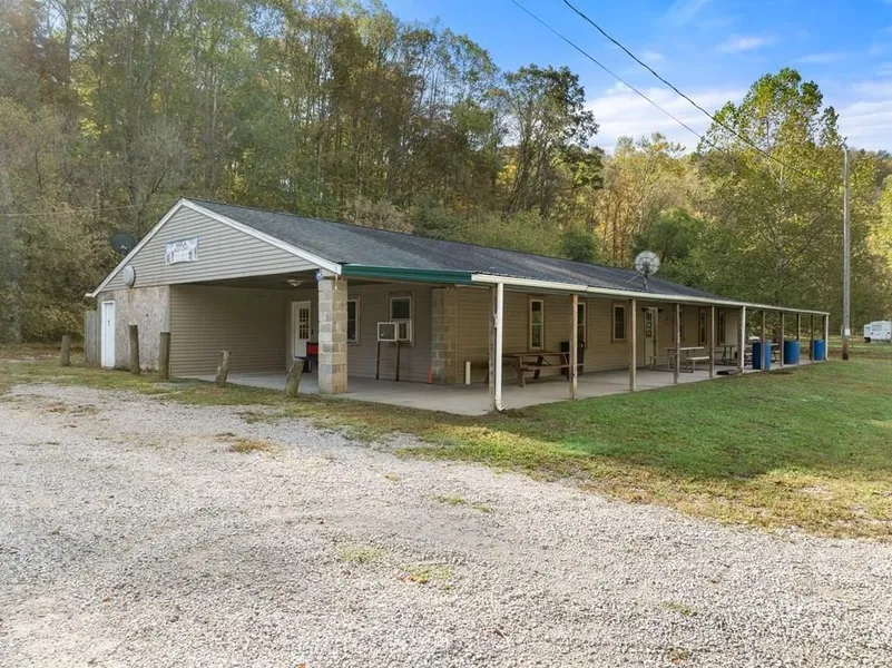 Excellent opportunity! This 3,536 sq. ft. building situated on nearly 3 acres along Big Wheeling Creek offers a beautiful setting and endless possibilities. Formerly operated as Bonnie's Bar, the interior features a U-shaped bar, spacious seating area, and a full commercial kitchen equipped with an ANSUL fire suppression system, grill, deep fryers, dual pizza oven, and stainless-steel sink. Covered porches provide additional seating, a large outdoor stage offers space for entertainment, and ample parking is available. Whether you're looking to reopen a bar or restaurant, establish a new business, or create a private retreat or camp, this property offers exceptional versatility.