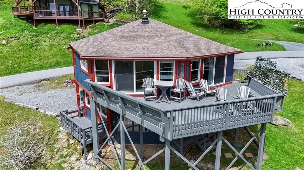 Huge views from this lovely updated round house on Seven Devils! Meticulously maintained and recently updated, this successful short-term rental is fully furnished and turn-key ready. Step into the spacious living room with vaulted wood ceilings and exposed wood beams, wood floors, and a cozy wood stove. The main living area flows well into the kitchen and dining areas with large sunny windows and long-range views. The kitchen features newer stainless steel appliances and plenty of cabinet storage space. A wrap-around deck with built-in seating extends the dining space and makes the perfect place to enjoy the views and cool temperatures. The primary bedroom is located on the main level with an en suite bath with a tile and glass block shower. The guest bedroom is also located on the main level with a private bath. Downstairs features a large game room with two twin bunk beds, as well as a full bath and a separate laundry room. With the long-range views, spacious bedrooms, central location in the High Country, ample parking, and furnishings, this home would make an excellent short-term rental, second home, or primary residence.