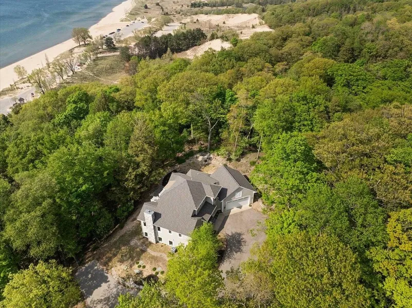 Welcome to the good Life. Nestled in the exclusive Dunegrass Community of Saugatuck on over 3 acres, this stunning custom built home offers Lake Michigan view and private Beach access via a private easement. Designed for both elegance and comfort the home features a main-floor primary suite, open floor plan, gourmet Kitchen with expansive island. The property boasts 5 additional bedrooms for family and friends. Enjoy every season in the spectacular four-season room, complete with cozy fireplace, perfect for relaxing or entertaining. Expansive windows fill the home with natural light, showcasing the serene wooded surroundings and stunning lake view. Call today for a private showing