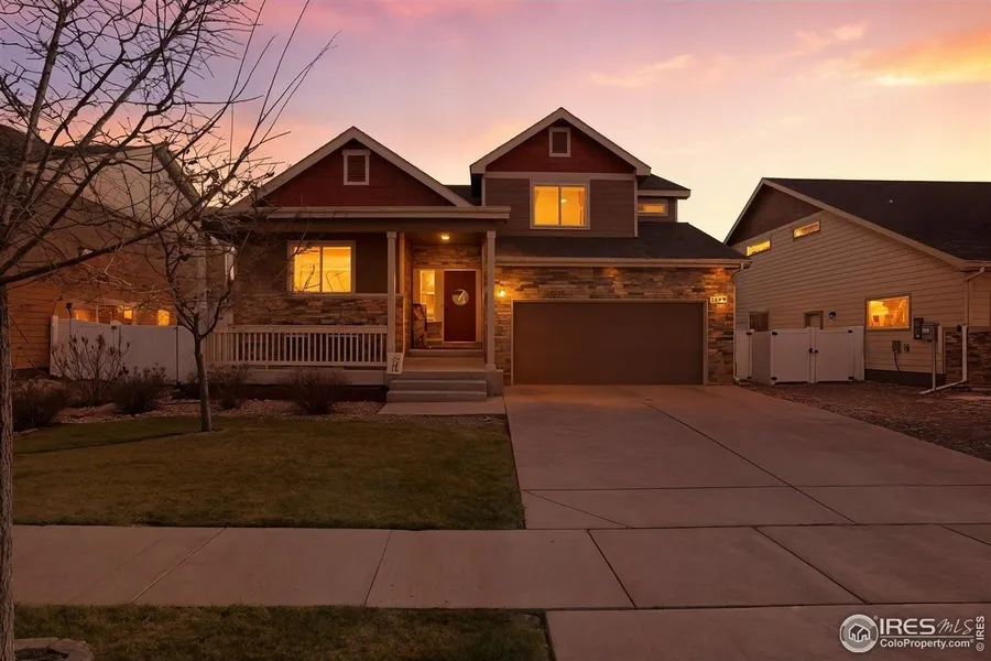 Beautiful home with multiple living spaces and finished basement! Step inside this bright, airy home featuring soaring ceilings and sun-splashed spaces. Large kitchen with tons of cabinet and counter space, composite sink, pantry, wraparound bar seating, and over-sink window. The dining space is perfect for entertaining and overlooks the sunken living room. Relax in the living room complete with custom shiplap accent wall, extra wide sliding glass door to the back patio, and plenty of space for oversized deep seating. HUGE laundry room with storage, cabinets, shelving, project counter, and window to warm the space with the sun. New barn door adds a custom touch to finish out the space. Large, manicured yard with expansive patio with sun sails (not pictured) and bistro lighting. There's plenty of space for yard games and a Summer BBQ under the stars. You'll find space for extra storage in the shed tucked at the rear corner of the yard (placed on a concrete pad). A great play structure sits on maintenance-free turf. Head to the finished basement for game night or to take in a film. Multiple living spaces provide room for everyone to have their own spot to relax. End the day in the serene Owner's Retreat complete with private bath and large walk-in closet. The Owner's private bathroom features dual vanities, framed mirrors, and tiled soaking tub and shower. Multiple spaces find views of the mountains and bring space to spread out. Fresh paint and new luxury vinyl plank flooring. Bring your toys - the 37' deep tandem 3-car garage feels massive. The metro district provides non-potable irrigation water and trash service for residents. Trails connect throughout the neighborhood and to the private pond. Schedule a tour today and make your next move your best move!