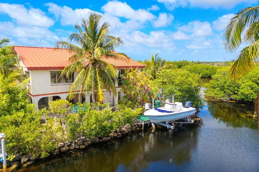 Set on a corner lot with 192 feet of canal frontage, this 2-bedroom concrete home with loft space offers a rare combination of privacy, water access, and functional design in the Florida Keys. The neighborhood also provides boat trailer storage for owners, a convenient feature that makes time on the water even easier. Situated within the National Key Deer Refuge, the property overlooks protected wetlands where native wildlife and migratory birds can be seen year-round. With a flow-through canal and a 12,000 lb. boatlift, quick access to both the Atlantic and the Gulf is always within reach. The elevated 1,840 sq ft concrete home is designed for comfort and usability. Hardwood and tile floors add character, while a dual-zone central air system and metal roof support lasting value. Storage is well-planned with generous closet space, and the screened porch opens the living area to canal vie...
