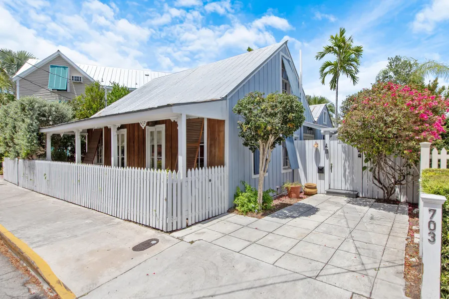 Perched at the highest island elevation referred to as Solares Hill you will find this timeless Old Town gem. A perfect blend of style and charm welcome you to an open concept floor plan with cathedral ceilings and wall of French doors that overlooks a tropical backyard oasis with heated pool, deck and brick patio. Thoughtful finishes that will stand the test of time throughout include built in shelving, painted wood ceilings and floors, dade county pine accents, subway tile and stainless appliances to name a few. 2 bedrooms on the first floor share a full bath and each has access to the charming front porch to watch the world go by. The 2nd floor is private to the primary bedroom with an ensuite bath finished in classic marble, built in storage and a glass walk-in shower. Let's not overlook the coveted off street parking for 1 vehicle and a fully fenced yard wrapped in white picket ...