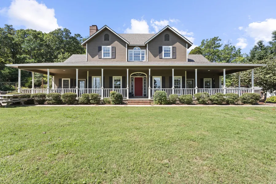 Beautiful 120-acre farm featuring a spacious 4-bedroom, 3.5-bath home with granite countertops in the kitchen, two living rooms each with its own fireplace, and a primary bedroom with fireplace located downstairs. Upstairs offers 3 bedrooms and 2 baths, providing plenty of room for family or guests. A 1-bedroom, 1-bath guest house includes a living room, fireplace, and attached garage. Outdoor amenities include a lighted and covered ½ basketball court, tractor storage, an in-ground pool with Cool Deck surface and outdoor fireplace, cross-fencing for livestock, 4 ponds, and a creek — the perfect farmstead retreat!