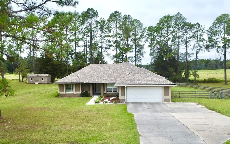 Welcome to this beautiful POOL home nestled on 1.5 acres in peaceful Meadowglen Farms neighborhood in Alachua, FL. This inviting 4 bedroom/ 3-bathroom home offers a perfect blend of comfort, style, and versatility, making it ideal for homeowners looking for unique living spaces coupled with convenience. Step inside to a great room with a fireplace that overlooks the screened-in saltwater pool and patio, to an updated, modern kitchen with stainless steel appliances, ample cabinetry, a separate coffee bar area and a generous breakfast bar and nook, as well as a formal dining room—perfect for hosting parties and family meals. There are two spacious living areas that boast plenty of natural light, creating warm and welcoming spaces for gatherings, unwinding with a favorite TV show or a book. The home has an owner’s retreat that opens on to the pool area that includes a large walk-in closet and an en-suite bathroom with an oversized dual-head shower. Enjoy outdoor living in the expansive 1.5-acre lot that has a fully fenced yard with additional back and side yards which is ideal for outdoor activities and gardening. Additional features include an exterior storage building, an updated laundry room with a sink, a two-car garage and a double driveway with extra paved parking for guests. Roof age is 2021, HVAC 2019, Water Heater 2025. Located just minutes from local schools, shopping centers, rivers and springs and only 5 minutes to I-75, this home shouts convenience!