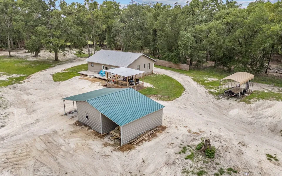 Tucked away on 4.78 high and dry acres, this cozy and updated 2-bedroom, 2-bathroom home offers peaceful privacy and modern comfort. A picturesque driveway welcomes you through an electric gate, leading you to a beautifully maintained home nestled in the back of the property. Thoughtfully updated and handicap accessible, the home features solid wood cabinetry, gorgeous granite countertops and tile flooring throughout. The spacious owner's suite includes a spacious walk-in/roll-in tiled shower. Enjoy year-round comfort in the enclosed Florida Room or take in the serene surroundings from either the back deck or the additional covered deck—both offering sweeping views of the recently cleared land and the abundant wildlife that visit the property. Additional highlights include a metal roof, a 12x28 metal RV carport, and a new metal building with two lean-tos, providing ample covered storage ...