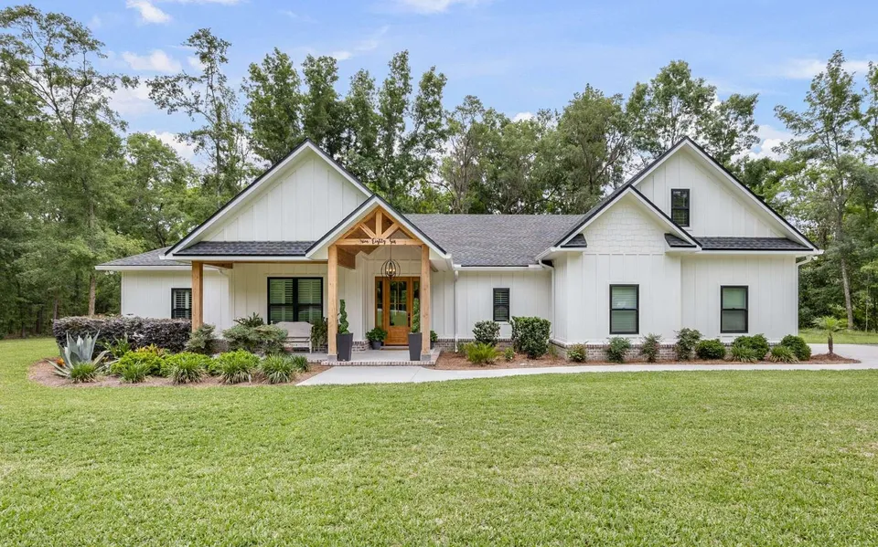 This immaculate, one-owner custom home offers the perfect blend of modern elegance and timeless craftsmanship. Located on a serene 5-acre parcel, the home shines like new and is brimming with high-end details from top to bottom. Step onto the inviting front porch and enter a foyer that immediately showcases the home’s craftsmanship and thoughtful design. The open floor plan flows seamlessly beneath soaring decorative ceilings, creating a bright and welcoming living space. The kitchen is a dream come true for any chef, featuring a large center island with a white farmhouse sink, custom cabinetry, a gas cooktop with a handcrafted hood, and a spacious walk-in pantry with built-in shelving and additional cabinetry. The kitchen and adjacent dining area open into a generous great room, all designed to bring family and friends together. A dedicated office provides space for work or creative pursuits. The luxurious owner's suite is a true retreat, a spa-inspired bath with a modern soaking tub, a large walk-in shower, dual vanities, and a walk-in closet that’s sure to impress. Two additional bedrooms share a stylish Jack and Jill bathroom, each with its own private vanity. Upstairs, a versatile bonus room offers additional living or recreational space. Throughout the home, thoughtful touches like decorative shiplap accents and rich tongue-and-groove ceilings add warmth and character. Step outside to the expansive screened-in back porch—perfect for enjoying the park-like backyard!
