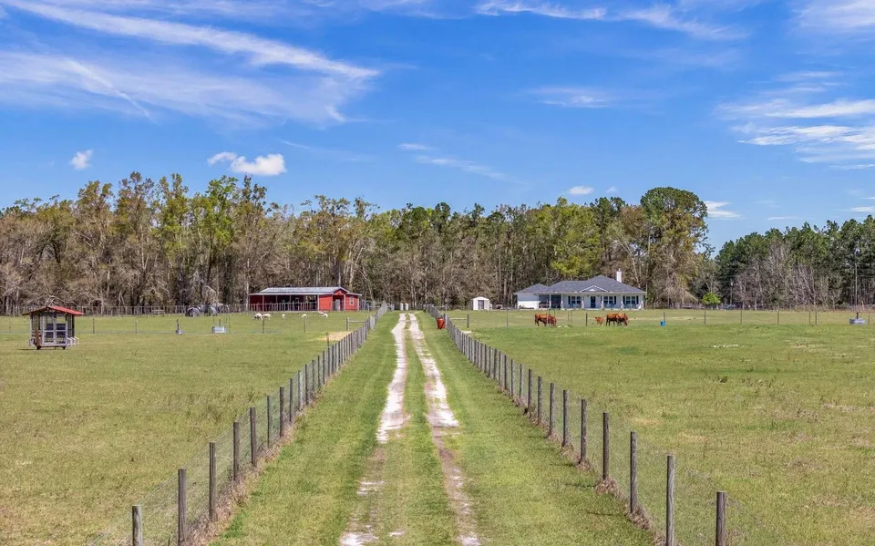 Discover the perfect blend of luxury, sustainability, and functionality in this immaculate custom-built home, set on 20 acres of picturesque, pasture-ready land. This turnkey property is ideal for regenerative farming, equestrian pursuits, agritourism, with no herbicides, pesticides, or GMOs used on the farm. Designed for comfort and efficiency, the open-concept home features a fabulous chef’s kitchen, complete with a 10' x 5' island, top-of-the-line KitchenAid double oven, Wolf gas cooktop, French-door refrigerator, Bosch dishwasher, and both a cast iron farm sink and stainless prep sink. Natural cherry wood floating shelves and a huge walk-in butler’s pantry enhance this stunning space. The owner’s suite is a true retreat, offering spacious walk-in closets, a Kohler cast iron footed tub, a walk-in shower, dual vanities, and even a safe room for peace of mind. Enjoy fast connectivity with Rapid Fiber, perfect for remote work, streaming, or running a home-based business. New barn with water & electric, 6 open stalls, feed room, multi-purpose room, and a workshop. Shed with electric, separate RV hookup with 30 AMP service. Four fenced and cross-fenced pastures with gated entries & irrigation. Thriving fruit orchards, blueberry bushes, vineyard, and raised bed/in-ground gardens. This exceptional farm-to-table estate offers a rare opportunity to live off the land in luxury, with everything in place for pastured farming, horses, or an agritourism venture.
