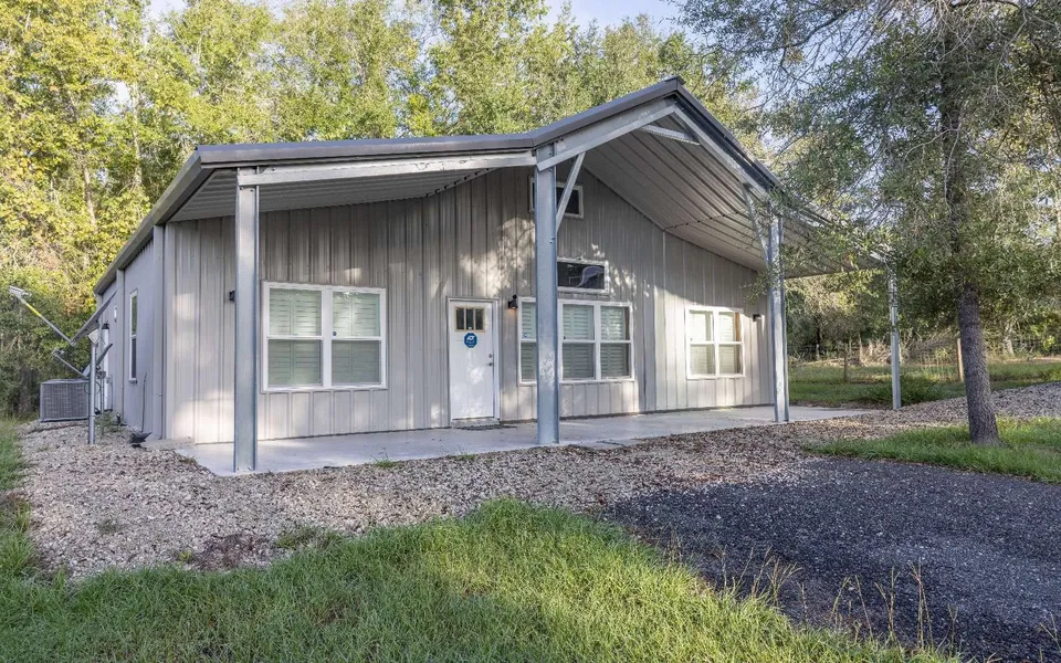 This amazing property is situated on 5 mostly cleared and fenced acres and is the perfect balance between a peaceful and quiet retreat while still conveniently located to shopping and dining as well as the rivers and natural springs for which this area of north Florida is famous. The primary 1,428 Sq. Ft. home constructed in 2023 features an open-plan living area with dining, kitchen and living space customizable to fit your needs. The dining room is separated from the rest of the living area with a set of stunning barn-style doors and is perfect for hosting friends and family. The master bedroom includes an en-suite bathroom with zero entry shower. A second full bath provides a tub/shower combo for a second bedroom. The back door leads conveniently into a utility area with sink and new washer dryer. Making use of the vertical space in this home is a spacious loft overlooking the living area. The second 1,250 Sq. Ft. home constructed in 2025 with polished concrete floors throughout features a 20’x 25’ master bedroom along with large master bathroom including a 4’x7’ tiled walk-in shower with solid wood soft-close cabinets and granite counter tops. The kitchen and living space also include granite counter tops and solid wood soft-close cabinets. A second bedroom with two large closets and an office/storage room complete this well-designed structure. Third, constructed in 2024, is a 1,200 Sq. Ft. four car garage/storage Bldg. complete with windows, electricity and a 14’overhead