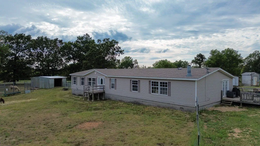 Beaver Road Homestead offers 2,660 sq. ft. of living space with 4 bedrooms and 2 bathrooms. This manufactured home has multiple living areas, a large kitchen, and spacious bedrooms. Outside, enjoy a large deck for entertaining and relaxing. The property has a livestock barn and is perimeter fenced with barbed wire, making it ready for pets or livestock. This homestead provides the quiet of country living with the convenience of nearby towns. The Beaver Road Homestead sits on approximately 3.5 acres of flat, usable ground. The property is fully fenced, offering both security and functionality for pets, livestock, or hobby farming. With open, level terrain, it provides plenty of space for outdoor activities, gardening, or future improvements. Improvements on the property include a 2,660 sq. ft. manufactured home with 4 bedrooms and 2 bathrooms, along with a pole barn covered in metal siding for storage or equipment use. Stella, Missouri, located in McDonald County, experiences a temperate climate with four distinct seasons-hot summers, mild to cool winters, and moderate rainfall throughout the year. The area receives an average of approximately 46 inches of rain annually, supporting the region's lush landscapes.