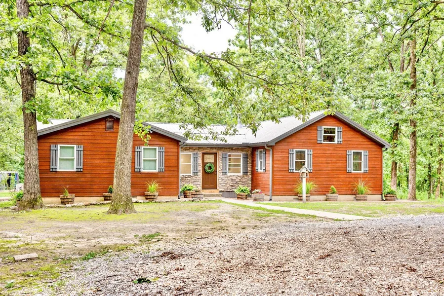 Nestled among tall trees in the serene country between Strawberry and Saffell, this spacious 4-bedroom, 3-bathroom home offers the perfect blend of rustic charm and modern updates. Originally built in 1983, the 2,232-square-foot residence was thoughtfully expanded and remodeled in 2024 to enhance both functionality and style. The home welcomes you with a cozy enclosed porch-ideal for kicking off shoes and hanging jackets-leading into a warm and inviting foyer. From there, the open-concept living room and kitchen create an airy, comfortable atmosphere. The kitchen is a true showpiece, featuring custom cabinetry, concrete countertops, a center island, stylish backsplash, and new appliances. It also includes a built-in desk or bar area, plus a walk-in pantry for added convenience. The living room continues the home's country aesthetic with beautiful tongue-and-groove wood walls and rustic ceiling. A wood stove set in a rock surround adds warmth and ties-in beautifully with the kitchen's design. Down the hall, you'll find a newly updated guest bathroom and ample storage closets. A secondary foyer leads to the private master suite, which includes a full bathroom and a walk-in closet. The remaining three bedrooms are located together and share a large, well-appointed guest bathroom. Outside, the 30x48 detached garage includes electricity and an exterior water spigot-ideal for projects, storage, and parking space. Further into the property, you'll find a picturesque pond and a trail that leads to a 60x64 shop building. Previously used for commercial purposes, the shop features county road frontage, electricity, septic, and a water meter. The building is equipped with 17-foot insulated walls (floor to truss), a concrete floor, oversized garage doors, and an insulated ceiling. The driveway to and alongside the shop is engineered to support the weight of semi-trucks. This unique property combines country living with incredible functionality and potential. Don't miss your chance to own this one-of-a-kind retreat-schedule your private showing today!