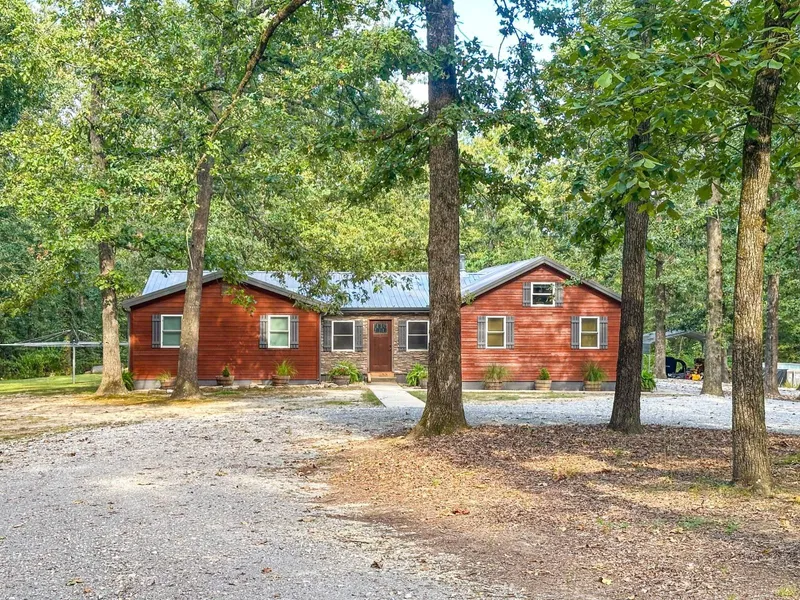 Nestled among tall trees in the serene country between Strawberry and Saffell, this spacious 4-bedroom, 3-bathroom home offers the perfect blend of rustic charm and modern updates. Originally built in 1983, the 2,232-square-foot residence was thoughtfully expanded and remodeled in 2024 to enhance both functionality and style. The home welcomes you with a cozy enclosed porch-ideal for kicking off shoes and hanging jackets-leading into a warm and inviting foyer. From there, the open-concept living room and kitchen create an airy, comfortable atmosphere. The kitchen is a true showpiece, featuring custom cabinetry, concrete countertops, a center island, stylish backsplash, and new appliances. It also includes a built-in desk or bar area, plus a walk-in pantry for added convenience. The living room continues the home's country aesthetic with beautiful tongue-and-groove wood walls and rustic ceiling. A wood stove set in a rock surround adds warmth and ties-in beautifully with the kitchen's design. Down the hall, you'll find a newly updated guest bathroom and ample storage closets. A secondary foyer leads to the private master suite, which includes a full bathroom and a walk-in closet. The remaining three bedrooms are located together and share a large, well-appointed guest bathroom. Outside, the 30x48 detached garage includes electricity and an exterior water spigot-ideal for projects, storage, and parking space.