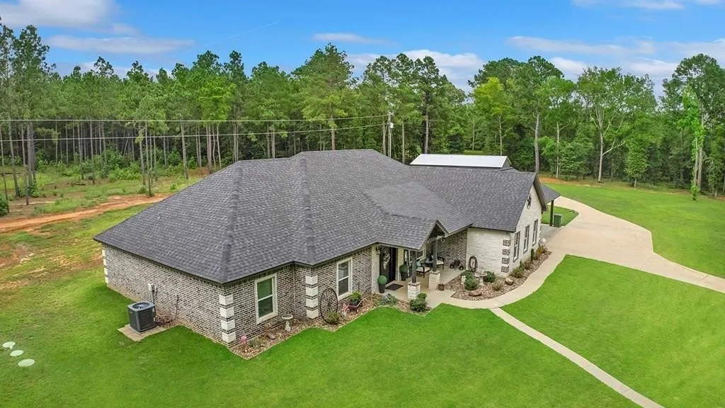 239 County Road 120 Central Heights This 4 bedroom, 2.5 bathroom home in Central Heights sits on 3 beautiful acres, half wooded for privacy and half open to showcase the home's striking brick and stone exterior. A large concrete driveway leads to a triple attached carport, a spacious roll-up-door shop, and a oversized metal storage container. Inside, the 3,000 square foot layout offers both comfort and flexibility. The vaulted main living room opens to a formal dining area, while a second living space in the den provides a more relaxed setting, complete with a built-in bar for entertaining. The home features spray foam insulation for energy efficiency and an eco water system that delivers instant hot water. With its open layout, high-quality finishes, and combination of indoor and outdoor amenities, this property blends luxury living with the charm and space of the country. Located in Central Heights ISD, it is a rare opportunity to own a home with all the extras in a prime location.