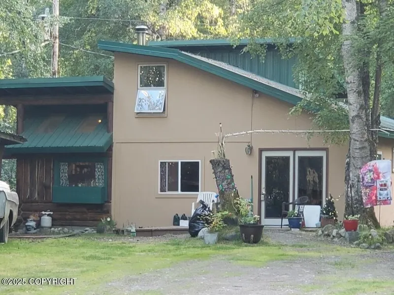 A Rare income potential, Commercial Enterprise and Residential opportunity. This one & only established square acre in East Talkeetna, 1.1 acres (4) contiguous Lots. 2 bed, 1.5 bath, 1,500 sq ft home. Great for the active outdoor enthusiast. Extras- Back porch great for viewing the Northern lights year-round. Nestled between the Talkeetna State Airport & The Village Airstrip Electric, Public Water & Sewer available to all lots, Year round road service. Year round public transit. Within fire & emergency district, close to Elementary School & bike/hike/ATV trails. Home is block and slab foundation.