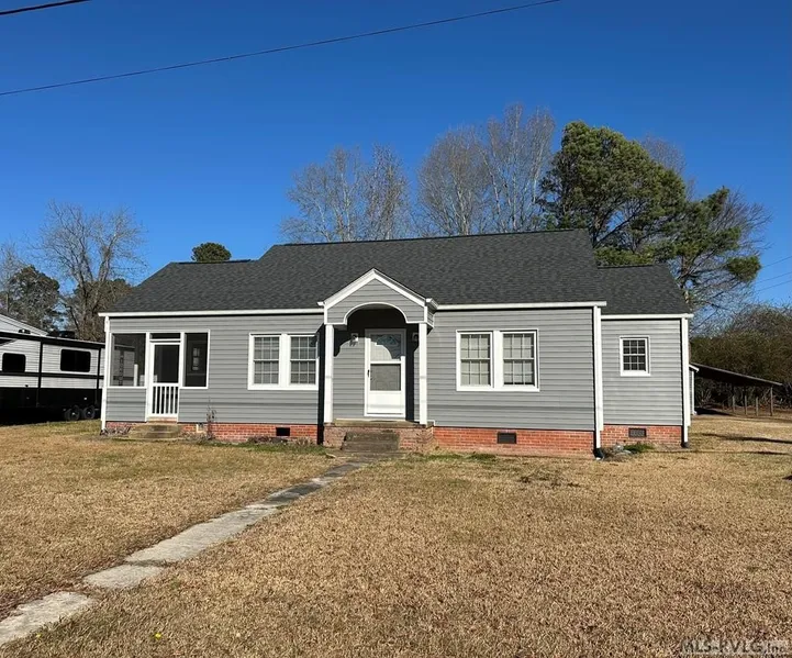 This cozy 3 Bedroom/1 Bath home is located just outside the town limits of Windsor, NC in Bertie County. Recent updates include new vinyl siding, gutters and new roof shingles in 2024. Inside you'll find a living room with a non-working fireplace (part of the chimney was removed), an adjoining dining room, kitchen with smooth top range and rear laundry/utility room. There are hardwood floors in the bedrooms and living room as well as several archways throughout that lend charm & character to the home. Outside you'll find a front screened porch where you can enjoy some fresh air & scenery and also a rear deck that would be great for grilling and entertaining. In the backyard, there is a nice, wired barn with a walk in door, a rollup door and lean-to on each side. This home has central HVAC and the windows were replaced a few years ago. There is cosmetic work & updates needed, makin...
