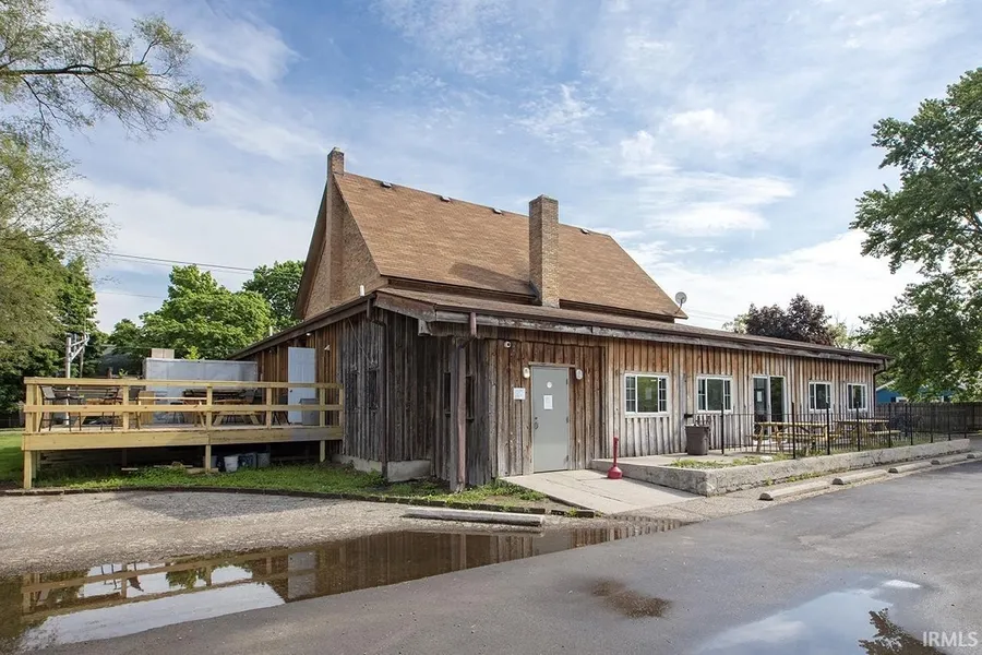 Restaurant/Bar with liquor license, 1 acre of B-3 zoned property at the signalized corner, large dining areas, 5 restrooms with 2 being handicap accessible. Seating for t\- 50 including 9 seats at the bar and currently set up with 6 pool tables. All furniture and equipment included except leased equipment. High ceilings. Large Deck, Walk-in Cooler, commercial kitchen with hood. Great character in this historic building.