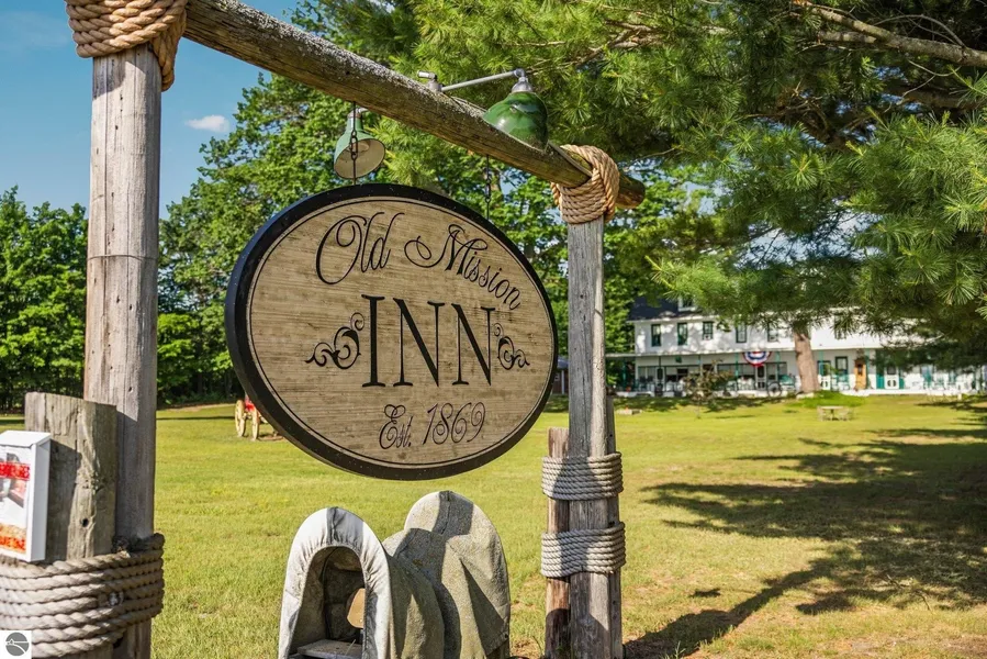 Landmark commercial opportunity on Old Mission Peninsula. Available for the first time in decades, the historic Old Mission Inn offers an unparalleled chance to acquire a piece of Northern Michigan heritage in a truly exceptional setting. Located at the tip of the peninsula, just steps from Haserot Beach, this iconic property has served as a welcoming retreat and a cornerstone of the Old Mission community since 1869 - making it the oldest continuously operating hotel in the state of Michigan. With only four owners since its inception, the Inn has been lovingly restored to preserve its original charm while reintroducing its storied past — including memorabilia dating back to the 1800s and the signatures of legendary guests like Babe Ruth and Joe Louis, still on display. Set on 10.85 pristine acres, the property features multiple guest accommodations, gathering areas, a café with a fully operational commercial kitchen, and original architectural elements that speak to its long legacy. The Inn is also the one of the only properties on Old Mission Peninsula offering short-term rentable rooms, and is ideally suited for continued hospitality use, special event hosting (especially perfect as a wedding venue), or thoughtful adaptive reuse. The sale includes all furnishings, a separate 5 bed / 2 bath home, multiple barns and pole buildings, and a 40’ x 100’ event tent - creating a rare opportunity to own, operate, and steward a true piece of Michigan history. An existing liquor license is also included in the sale. Surrounded by protected shoreline, scenic vineyards, and just 20 minutes from downtown Traverse City, this is a once-in-a-generation offering in one of the region’s most tightly held and culturally significant locations.