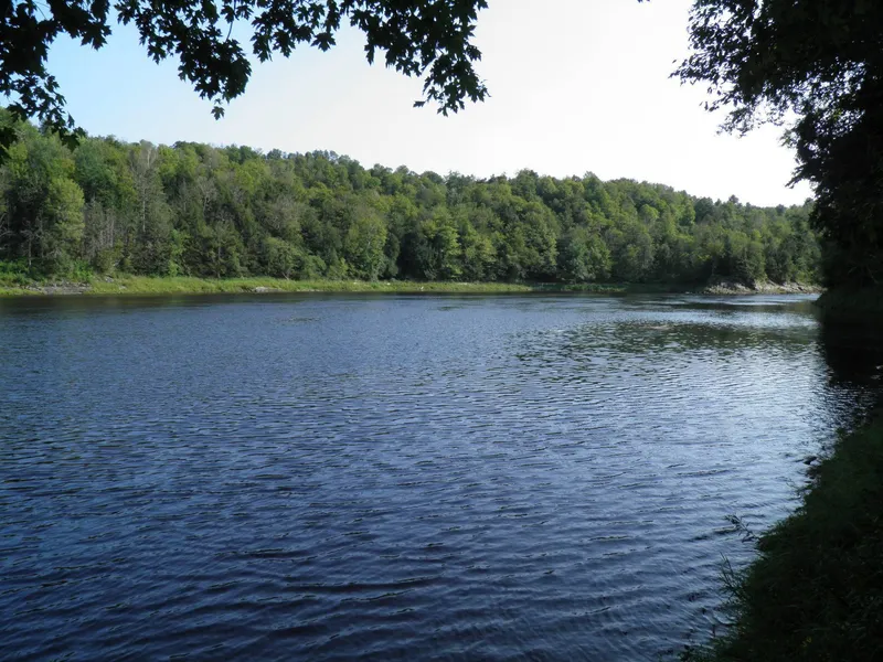 NYS land with cabins with income potential, refurbished barn, certified organic fields and pond with 1600’ frontage on the Oswegatchie River for sale: The main and guest cabins on this property were built in 2015 using skilled craftsmen from Northern New York. Much of the lumber for their construction was milled from softwood trees harvested from the property. The one bedroom, 600 sf, wood framed and sided, steel roofed and fully insulated main cabin sets upon a concrete block foundation over a full basement. The basement, used for water storage and utilities, is accessed through a trap door in front of the kitchen sink. The cabin does not have permanent plumbing or a septic system, however there is a portable outhouse and outdoor shower near the barn. There is a dug well also near the barn, but it has not been piped to the cabin. The well water was tested to be potable. Two barrels in the basement store rain water (110 gallons total) but also can be filled from another source (such as the well). A pressure tank and a 12 volt battery push water from the barrels to the kitchen sink. It was wired for 200 amp service by a certified electrician and inspected by the Town of Rossie Code Enforcement Officer. When needed, power is supplied by a portable generator. A covered porch wraps around 2 sides of the cabin while a closed in third side, with access from inside and out, serves as a multipurpose storage room and temporary bathroom. Kitchen, living and dining all share the same room and surround the woodstove in its center, the only heat source for the cabin. LP gas fuels the cooktop/oven. The remaining rooms are a bedroom on the back side of the cabin and an open loft. The interior walls, ceiling and floor are finished with tongue and groove pine. The tan colored knotty wood combined with sunlight shining thru the numerous insulated windows results in a very warm and bright atmosphere within the cabin. The guest cabin is just a short hike from the main cabin and serves as a place to retreat to for alone time or meditation. It is a 160 sf, wood framed building with no amenities at this time. The Post and Beam method was employed during its construction and adds to the beauty and unique character of this structure. The barn was originally built in the early 1900’s and is all that is left of the original homestead. The current owner decided to preserve and rejuvenate the structure and did so from the foundation up. The stalls in the lower level of the barn could easily accommodate a few domestic animals and the upper level would facilitate both hay and equipment storage. The property was completely surveyed in 2014 and the boundary lines painted. The fields on the property were certified organic in 2015. The last mile or so of Campbell Road is seasonally maintained and electric is not available roadside. This part of Northern NY, known as the St. Lawrence River Valley, found between the River and the Adirondack Mountains, is characterized by picturesque forests, fields, rivers, creeks and streams. Properties such as this one exemplifies all the amazing virtues you may find in a parcel of land in this area. It is thriving with diversity, both in physical characteristics and wildlife. Physical features include; ~10 acres of small creeks and wetland, ~20 acres of open fields ideal for planting your favorite forage or certified organic crop, ~90 acres of northern hardwood forest and ~1,600 feet of river frontage accessible by foot, jeep or atv, via a maintained trail. The predominant tree species found amongst the rock outcrops include; hard and soft maple, basswood, red and white oak, ash, cherry, hickory, beech, willow and elm. Game species such as deer, bear, turkey, grouse, woodcock and assorted waterfowl find the resources of this area to their liking. At the end of the trail next to the river there is a level and dry area to pitch a tent and launch a canoe or kayak. This section of the Oswegatchie is popular for bass, catfish, northern pike, muskellunge, brown trout and walleye to name a few. The ‘Retreat’ is currently being rented through an on-line service with a 60% occupancy during the winter months and 80% in the summer. Customers are also purchasing meat, eggs, firewood, etc. from the working farm, also owned by the seller (and for sale as well), just 2.5 miles down the road. Combine the two in one purchase for greater savings and a tremendous opportunity to expand on this unique and growing enterprise. The Retreat alone would make a great place for a family or group that enjoys spending good quality, outdoor recreational time together, or has always dreamed of working off the land for fun and/or as part of their livelihood!