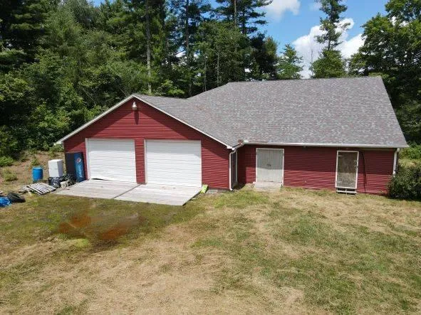 The L shape garage/workshop is a newer building with vinyl siding exterior, double roll-up garage doors, passage entry doors, and a concrete floor. The interior has a large open-span garage section of 35 x 63. The garage will include an air compressor and filter unit. The air compressor room size is 5.5 x 7.5. The 28 x 35 side room is used as...