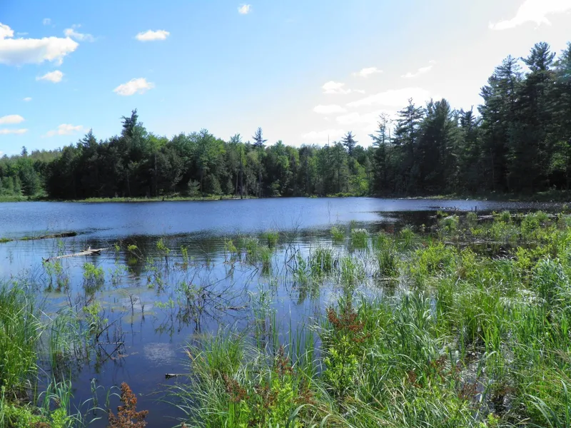 Three beaver ponds exist; one, ~12 acres in size is entirely on the property in the north central region, roughly 3 acres of a larger pond partially overlaps the western boundary and approximately 3 acres of another pond, also partially on the property, extends across the northern most boundary. The largest of the three is solely within the boundaries and is by far the most picturesque and accessible. It was there I found a hardy beaver population, painted and snapping turtles, blue heron and a variety of waterfowl. An old woods trail weaves it's way westward from the end of Rice Road through a maple grove, passing near the southern shore of the pond. In that vicinity you'll find the foundation of the sugar shanty identified by the remnants of the boiling pan returning to the earth nearby. Enormous old sugar maples still dominate the area surrounded by the seedlings and saplings of younger generations. Maple syrup production may be an option to explore for an ambitious owner. There are certainly enough trees present to tap for personal use.