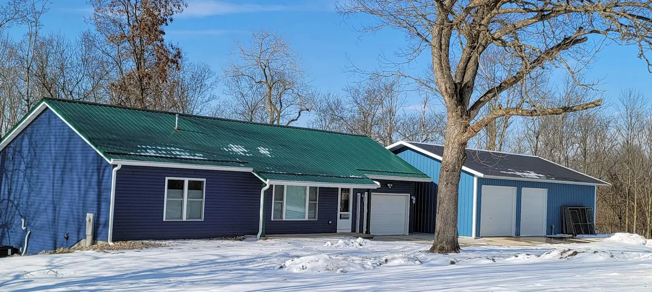 You are not going to miss out on this meticulous ranch home on 20 wooded acres with heated shop just 7 miles northeast of Richland Center. Over 2,176 square feet of open modern living space. Main floor offers 2 bedrooms 1 bath, mud room, office large living room open to kitchen and dining room with new etched glass patio doors to 1622 new deck overlooking rear yard and wooded valley below. Lower level recently finished 3028 family room or easy converted to a 3rd bedroom, 1813 Bonus room, laundry and renovated full bath with walk in shower. Attached enclosed covered porch with walk out access to over 1-acre plus manicured lawn with large garden of everbearing raspberries, rhubarb, asparagus and recent numerous plantings of pine trees, dwarf firebushes, red dog woods and lilacs.