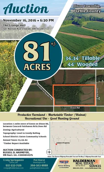 Auction Location: The Grange Hall: 501 Nation Ave. Eaton, Ohio 45320