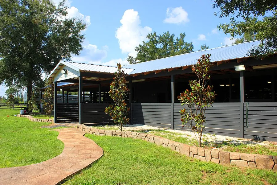 DRASTICALLY REDUCED!!! Located in Ocala Horse Complex & 3/4 Mile Track Rights: From the moment you drive up this farms tree lined driveway you know this farm is special. This farm features a new 20 stall main barn with automatic waterers in every stall, huge tack/feed rooms, full bathroom, 2 wash stalls, and storage for shavings. It also features a stone waterfall landscape in front of the barn with a firepit perfect for entertaining. There is also a round pen. The home has been completely remodeled and modernised. It features 2 bedrooms and 2 full bathrooms. The master suite comes with a large bathroom with his & her sink, study/office, & bedroom. The home features an open floor plan with a stone fireplace separating the living room from the kitchen and ding area. The kitchen has beautiful new cabinets, granite counter tops, and new Stainless Steel appliances. It also has a new roof. The farm comes with access to one of the best 3/4 mile training tracks in the county and is only minutes to OBS.