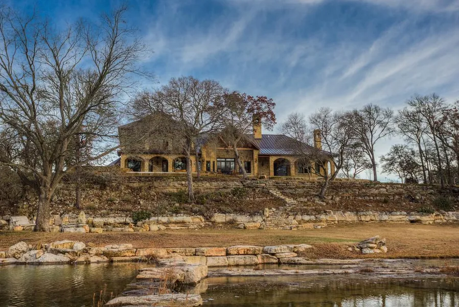 Beautiful custom Built Home with approx. 7200 sq. ft. 5 Bedrooms, 5 1/2 Bathes Hardwood floors, Gourmet Kitchen, Large Living/ Dinning Room, Game Room, Big covered porches with infinity Pool over looking Creek , Guest Home 1 bedroom , 1 bath, Kitchen/Living room overlooking creek with 3 dams and a spring fed lake stocked with fish and rolling tree cover land for family enjoyment! Much more to see on this Beautiful Ranch! Excellent Hunting! Very Private!