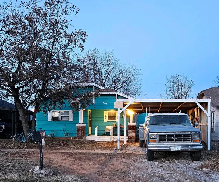 ''COZY COMFORT''- 2 BR, 1 Bath w/ Central Heat & Air. Once you step-up on this covered front porch you'll feel at home. Inside, the living area, dining area, and kitchen are all one open space. The 2 BRs are both equally served with the Bathroom situated between them. A hallway w/ closet space allows privacy for the bathroom. The laundry area w/ additional storage space, sits behind the kitchen and doubles as a mudroom leading to the backyard. Outback is a storage shed and a workshop/hangout building. This building has had work on it to convert it to a small apartment. The 2 car carport sits on the east side of the property. Concrete Storm Cellar in backyard.