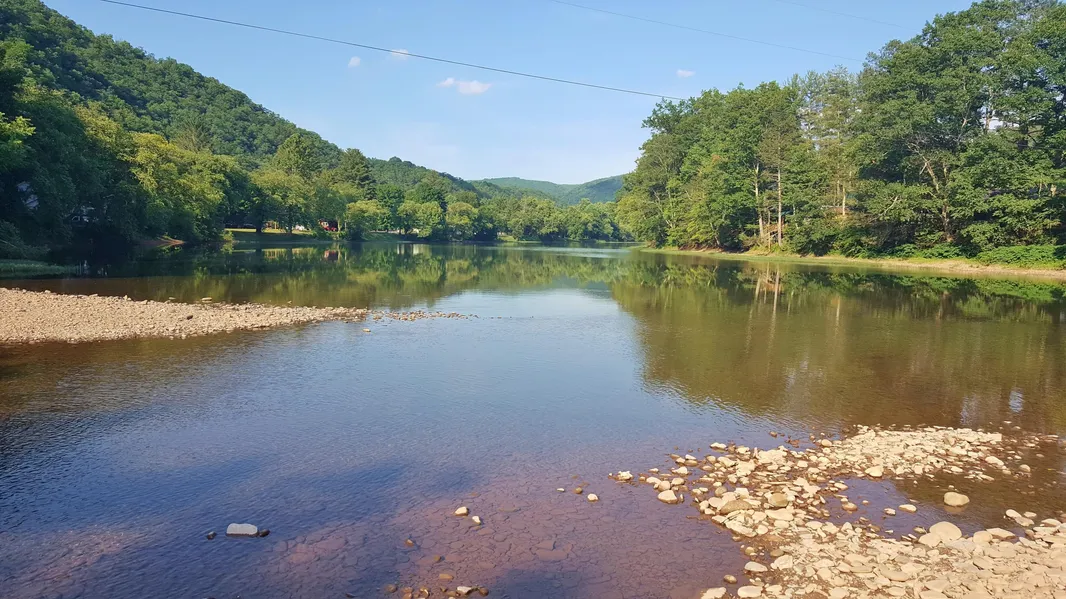 10 +/- acres in Seebert with direct access to the Greenbrier River and Greenbrier River Trail. Park like setting and borders Stamping Creek. Electric service to the outbuilding and picnic shelter. Telephone line on the property. conduit in ground (with rope) leading to the well.