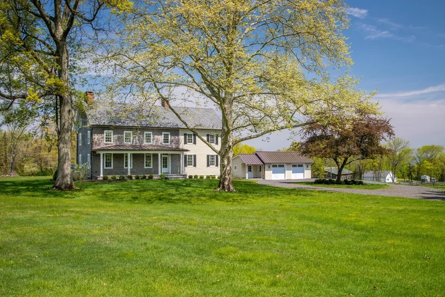 The circa 1823 pointed stone home was restored, with panache, in 2018. Only the best materials were used, including Azek trim, Hardi Plank siding, a 2018 slate roof with snowguards, and copper gutters and downspouts. A covered front porch beckons with bluestone flooring and a mahogany ceiling. Inside, wide plank floors span both levels of the home, enhancing the history and warmth. The large living room has two exposed stone walls, new, true-divided light Pella windows with deep window sills, and a wood-burning fireplace perfect for chilly evenings. Nearby, the den can serve as a first-floor bedroom, with its own gas-log fireplace. The floorplan flows naturally into the oversized kitchen boasting every modern convenience and top-of-the-line accoutrements. Leathered granite countertops, with marble and grain bin backsplashes, merge seamlessly with abundant white cabinetry, a paneled Sub Zero refrigerator with separate freezer drawers, and a stainless steel Viking cooktop. Adjacent, the original summer kitchen is now a dining room, featuring a cozy Jotul stove and opening to the wrap-around bluestone patio. Embellishing the patio is a timber frame pergola with led lights and a built-in Wolf grill with stone surround, and gas lamp lights that spring to light with the flick of a switch.