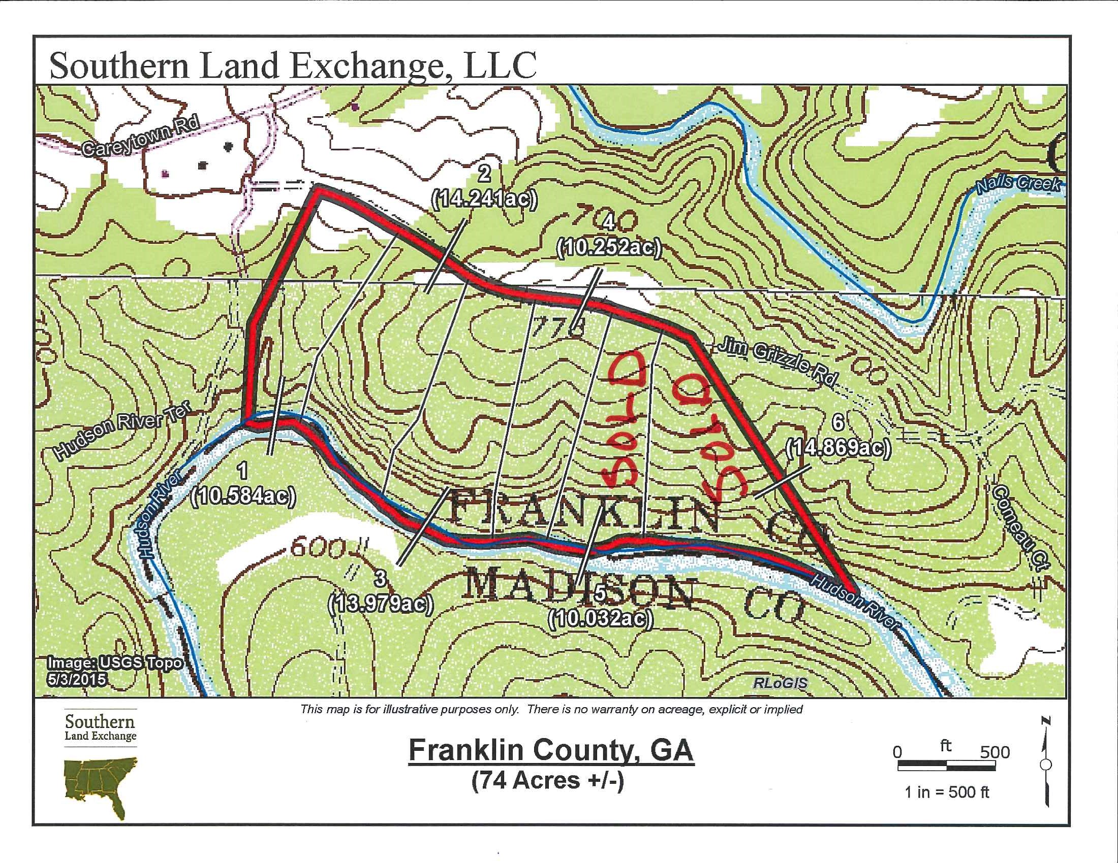 4 incredible estate quality lots located on the beautiful banks of the Hudson River in Franklin County. Riverview on the Hudson offers large lots from 10 to 14+/- acres. Tall plantation pines great you as you enter the front of the property transitioning into mature, stately hardwoods leading to the river banks. Come imagine the possibilities with me! Call Mark Costello to view this property. 706-207-5850
