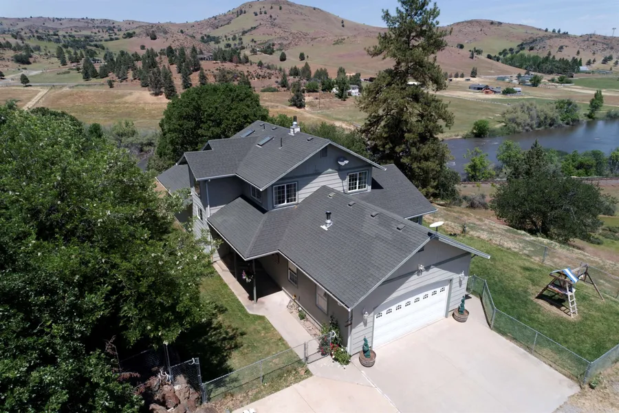 Welcome to The River house on Rainbow Street! This single-owner home was custom designed for river views & vistas from every angle! Upon entry, you'll be captivated by this elegant home featuring 4 bedrooms, 2.5 baths, a private office/den in a spacious floor plan! Enjoy central heat/ac & custom amenities in the open floor plan allowing a seamless flow between the living room, dining area, & kitchen to the deck- Perfect spaces for entertaining or enjoying quality time! The main level primary suite has private access to the scenic deck with 3 bedrooms & full bath upstairs. Skylights & window placement add more elegance to the property and AMAZING VIEWS! The exterior features are just as impressive with a 2-car attached garage (finished), detached workshop, woodshed and full RV hookup providing ample space for parking & storage. Situated just 4 miles from Interstate 5 access- easy commu...