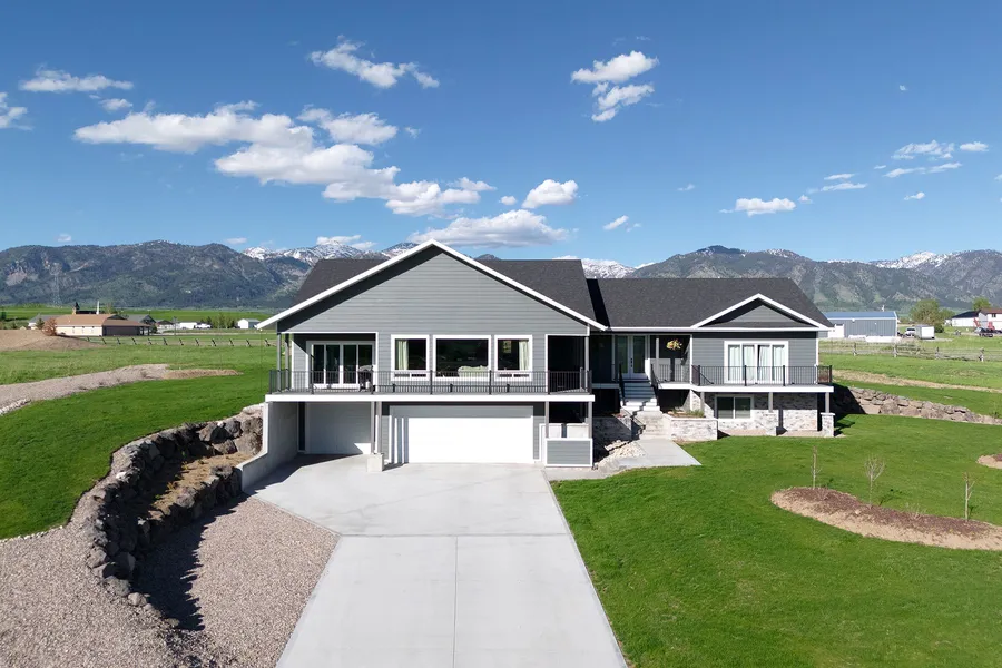 Beautifully situated five-bedroom home in the desirable Riverbend Meadows in Thayne. The home sits tucked on a quiet cul-de-sac, and has expansive mountain views. The main-level has three bedrooms all with en-suite bathrooms, an open concept living room/kitchen with cozy rock fireplace and spacious windows overlooking the neighborhood ponds and surrounding mountains. Mudroom/laundry room, large pantry, and dining nook as well on the main level. The finished basement has a family room, and two more bedrooms and bathrooms. The oversized 1400+ sq ft garage offers plenty of space for the toys and even has a finished seperate workshop room. The neighborhood offers paved roads, stocked ponds, and community Salt River access and common space, all while just being a short drive to town. A must see!