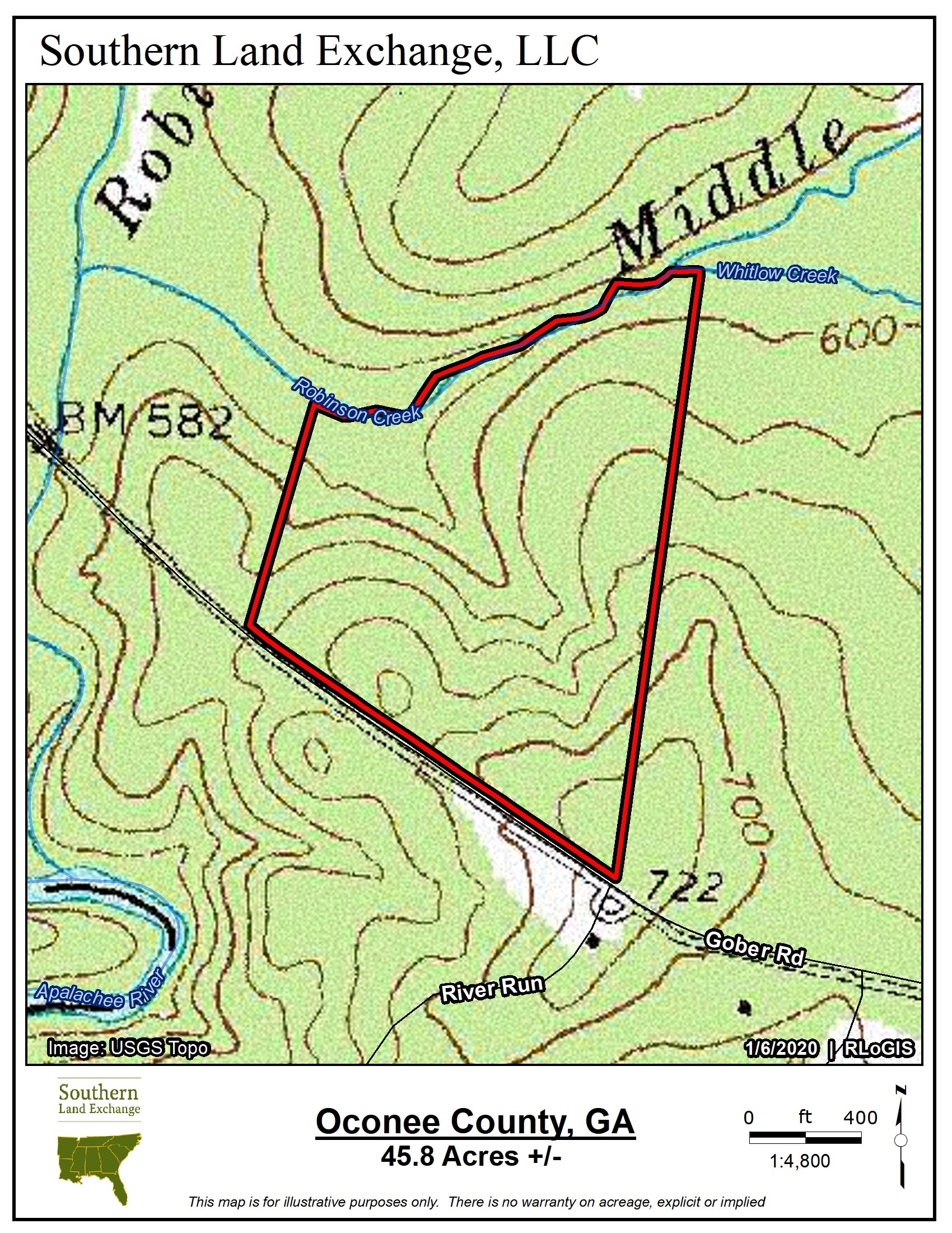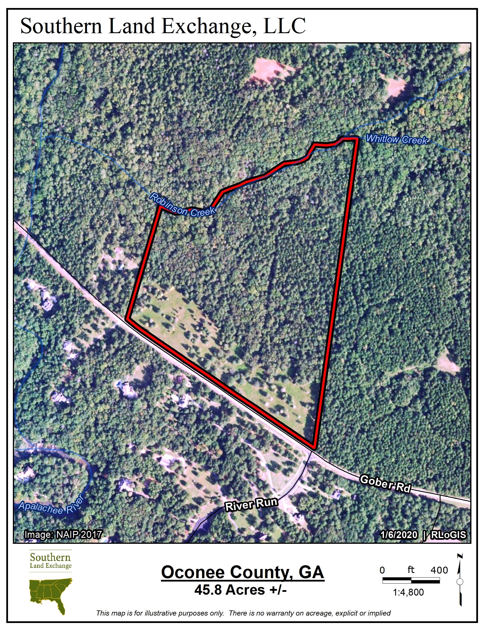 * Over 1,200 feet of creek frontage on Robinson Creek, a branch off the Apalachee River.