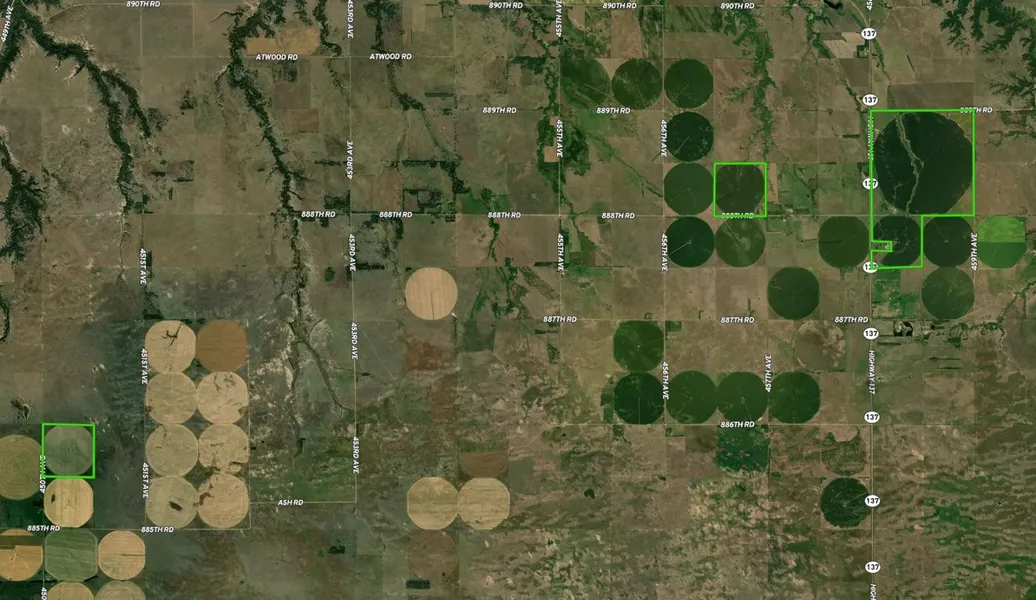 Tract 1 is a complete section, less a few acres for Highway 137, and an adjoining partial section. The highway, which runs along the West boundary of the farm, provides excellent access. This section and the adjoining partial quarter section have multiple wells, which are all tied together to provide a sufficient water supply to a 17-tower Zimmatic pivot and a 7-tower Valley pivot. This tract includes a Brock 37,000 bu +/- steel grain bin and a 39’ x 69’ quonset building with a cement floor.