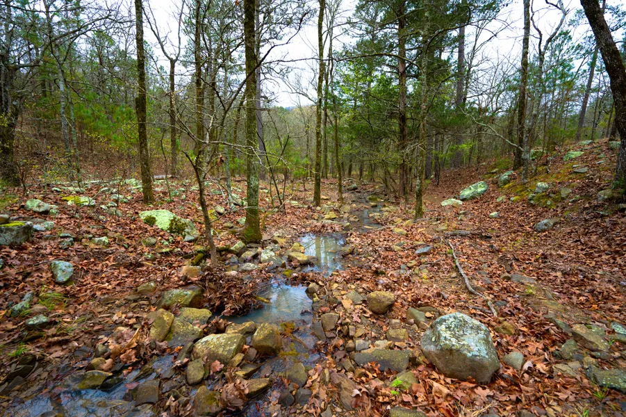 Off Grid and very buildable with only a little over 120' of elevation change from north to south, it's like a walk in the park! It even has a nice little creek on it and just has a great feel to it. The property is located on Rock Creek Ranch Rd, a historic railroad track that has been transformed into a scenic by-way and provides access to the Rock Creek Valley of the Ouachita Mountains. Whatever your sport, you will find this area perfect for it...hiking, horseback riding, sightseeing, hunting, 4-wheeling, motorcycling, fishing, boating, and other watersports and even parasailing and hang gliding can be found just minutes away. Le Flore County is a top county for whitetail deer, turkey, hog, and squirrel hunting. And it is one of the few counties in Oklahoma that even has a black bear hunting season!