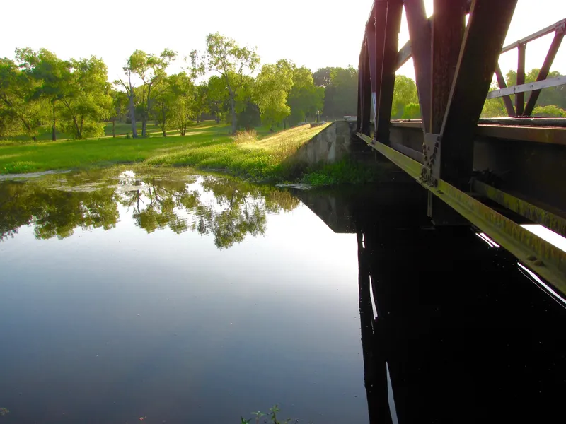 2,400 SF waterfront pavilion with event lighting and expansive sandstone terrace perched atop Rock Lake Creek; terrace area also includes a sitting area overlooking the water.