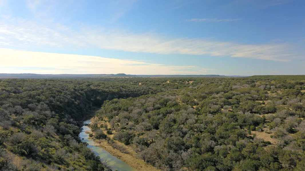 Located in the scenic southwest hill country of Mason County, Rocky Creek ranch features a great combination of diverse and exciting topography, wildlife, views, live water, improvements and ease of access along paved Ranch Rd. 1871 frontage. The landscape is rolling to hilly with 100' elevation changes providing views of both the Blue Mountain range and Llano River Basin. The front/south portion of ranch is lower lying pasture land with red sandy loam soils, big live oaks, mesquite and brush while the northern section consists of limestone hills densely wooded in mountain cedar, live oak, spanish oak, cacti, and Spanish dagger yuccas. Seasonal Rocky Creek is the highlight as it stretches through the entire length of property and gives way to deep canyons and sheer cliffs over wide holes of crystal clear water. Tremendous potential for hunting or game ranch with a large population of whitetail deer, feral hogs, coyotes, bobcat, turkey, dove and quail. One water well on property with electric running to and along entire western boundary. Perimeter, low fenced barbed wire with good access throughout on well maintained pasture roads. Main access is off Ranch Rd. 1871 with additional, non-exclusive easement access along the western boundary which serves 3 other ranches to the north and west. Subject property is situated over both the Hickory Underground and Edwards-Trinity Aquifers and seller will convey all mineral interest which is believed to be 100%. Reduced price to $3,000 per acre.