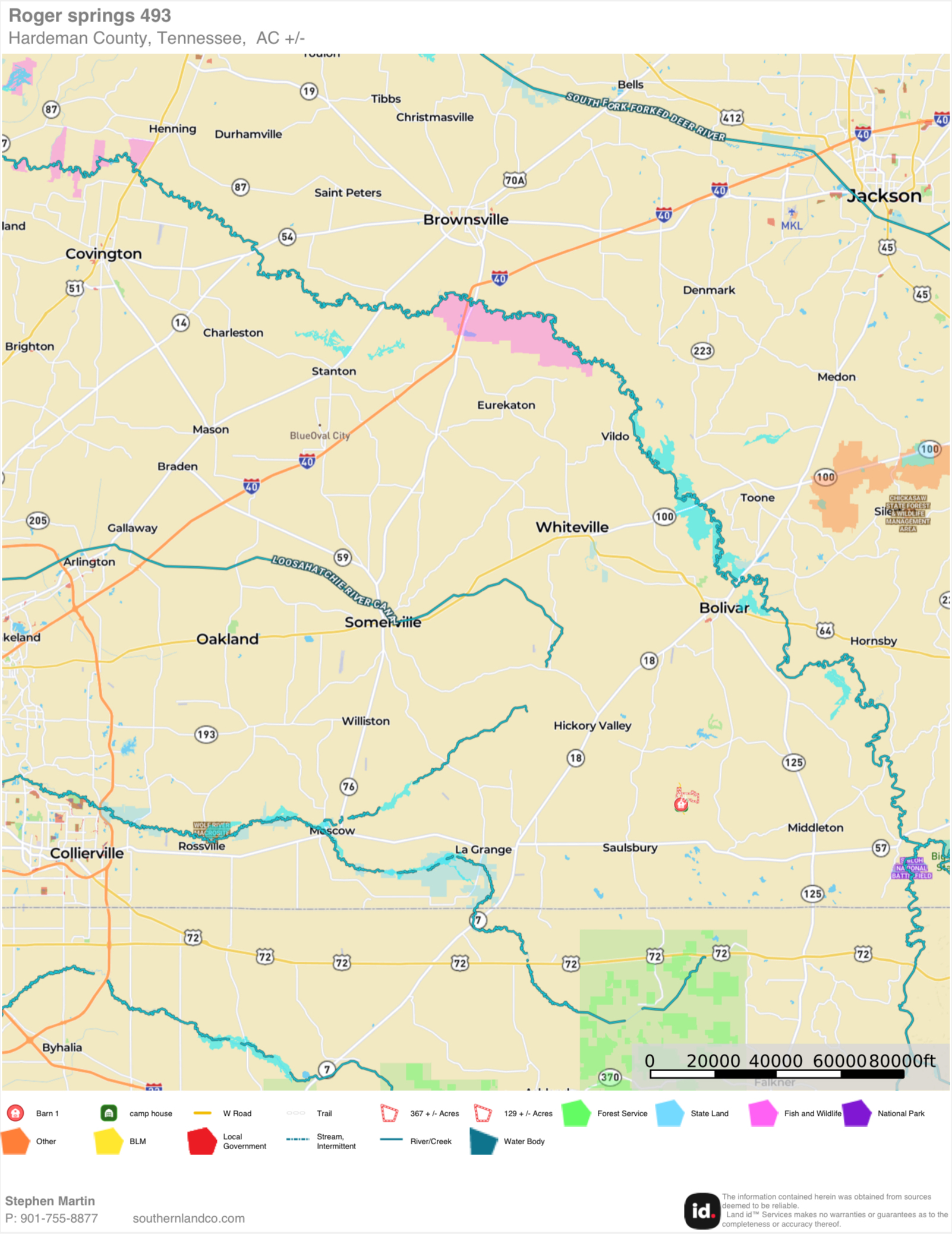 Welcome to Roger Springs 493, a remarkable 493 acre recreational and hunting retreat located in the heart of West Tennessee. Situated in Hardeman County at 1230 West Rd, Saulsbury, TN 38067, this expansive property offers a rare blend of seclusion, accessibility, and natural beauty. Highlights include mature hardwood timber, an established internal trail system, excellent road frontage with power access, and strategically placed deer stands and hunting blinds throughout the tract. Surrounded by large neighboring farms, this property is ideally suited for hunting, recreation, or building your private getaway.
