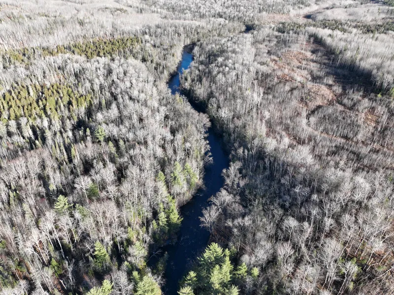 Rolling hills with hardwoods, young aspen, balsam and spruce create a wonderful environment for deer, bear, grouse, woodcock and turkeys. Some of the land was logged about 10 years ago, so the understory provides lots of browse for deer along with great cover. The south border of this property connects to a large block of Wisconsin DNR land (part of the Pine-Popple Wild Rivers) and the famous Popple River is just 600 feet south. The Popple is famous for great trout fishing, including Browns and Brooks and just east is where the Pine River joins the Popple, creating even more opportunities for great Northern Wisconsin trout fishing. On the west side of the property is a very large block of Goodman Forest, with rolling hardwoods that provide a wonderful place to hunt on land that borders your property and it is free to use. An old cabin is found on the west side of the property mile south...