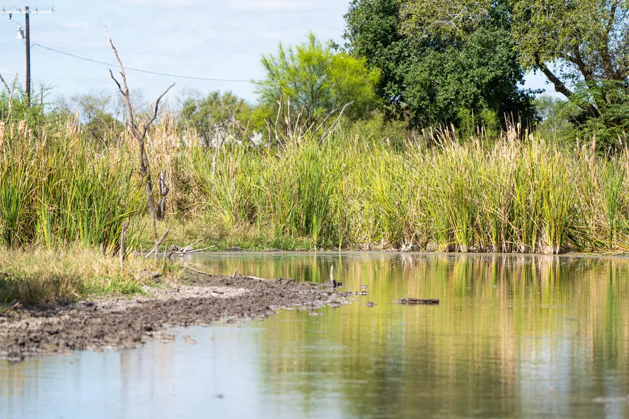 The topography of the ranch is relatively flat on the northwest side and gently sloping with a change in elevation from 85 to 45 above sea level, sloping towards Sandy Hollow Creek that cuts through the east side of the property. Most of the property appears to sit above the flood plain, however, the creek system is lower and is part of the flood plain area of the Nueces River. There is also a pond in the far western corner of the property and another low area or creek in the far northwest corner. The soils are clay to sandy loam, identified as Victoria clay soil, along with Willacy, Papalote, Clareville, Hildago, and Orelia sandy loam, plus Sinton and Clareville clay loam. From near the middle of the property to the northwest corner it appears to consist of improved grass pastureland covering approximately one third of the whole property. The remainder is mostly big trees and brush with some nice, maintained shredded areas scattered around the east side.