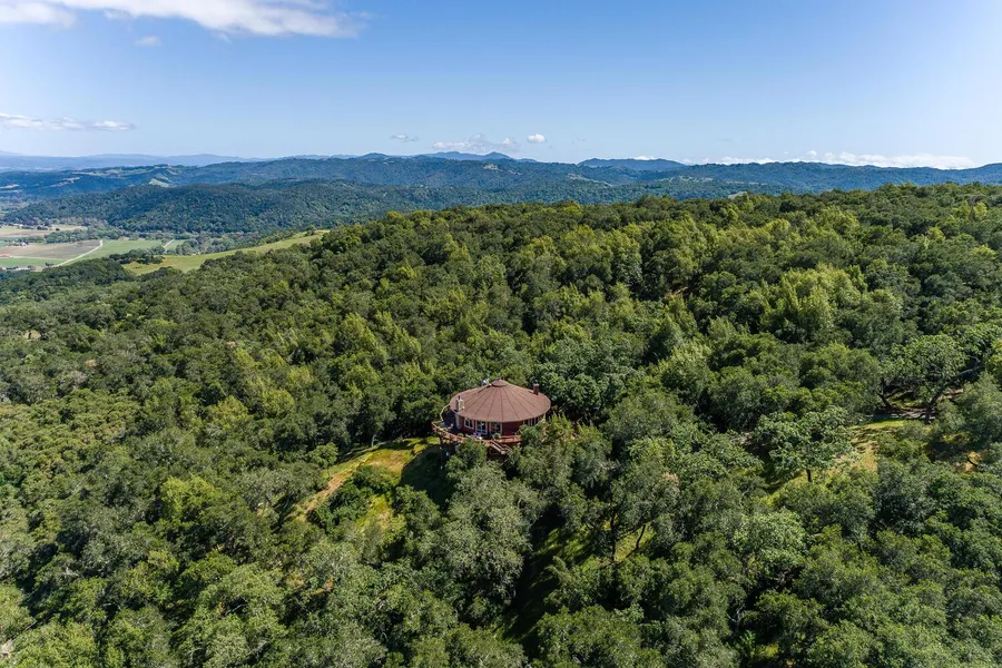 Perched in the heart of wine country with breathtaking panoramic views lies this idyllic round house sanctuary. Located on 20 acres this home is cloaked in an oak forest yet close to the charming downtowns of Templeton and Paso Robles, you can have your own private escape and still be close to it all.