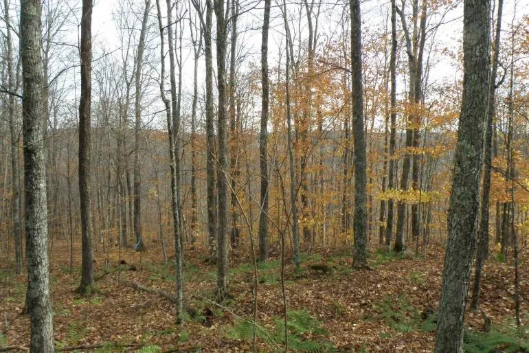 The high point on the forest (1,280 above sea level [ASL]) is the southernmost knob where views of the surrounding mountains and valley below can be enjoyed during leaf-off periods of the year. In this area, hardwoods dominate the forest. From this area, the land slopes to the road, supporting hemlock and mixed hardwood stands, with an elevation near the road of 780 ASL. This primarily softwood part of the land covers a mapped winter deer yard, an area known for supporting winter deer habitat. In addition, the southern part of the land offers good browse and a red oak component whose mast acorns provide high levels of protein for the deer herd.