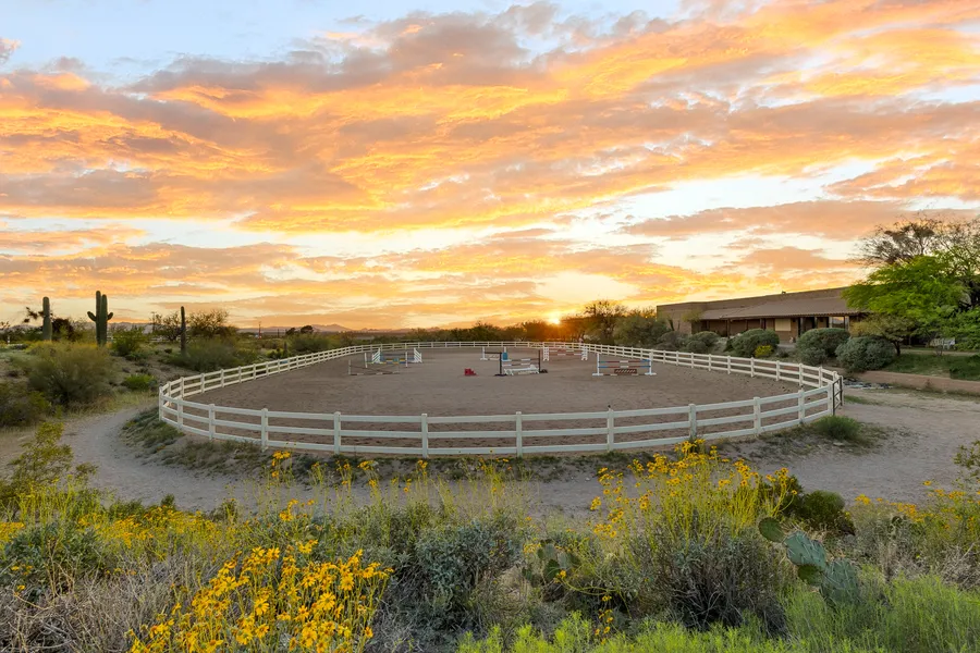 Royal Star Equestrian Center is Southeast Tucson's premier horse facility, adjacent to the Saguaro National Monument East, offering access to endless scenic trails in the famous saguaro-studded hills nearby. Royal Star is a dynamic, income-producing horse-lovers paradise w/ a variety of possible uses. This 18-acre property, unlike any other, is situated on a hill, capturing sensational mountain, city & iconic Tucson sunset views. The elevation of the. land eliminates flooding concerns, improving the facility's functionality. The property currently houses 2,200 sf main residence, 3 rented casitas (triplex), an impressive 22,000 square foot main stable w/ 27 stalls, a fully covered foaling stall, individual & group tack rooms, an enormous feed room, three large turn-outs,