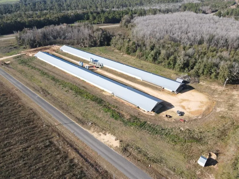 Rum Creek Farm is a two house breeder farm currently contracted with Wayne Farms. This farm is located in Covington County, Alabama near Wing. The farm has 13+/- acres with a wooded lot for a mobile home. There is a newer breeder farm and has historically performed well. This farm has egg cooler rooms built in the Egg collection room. This farm has no known updates at this time. The poultry houses are all 42x500 two were built in 2018 and currently growing the 5th flock of birds. The farm has the following equipment: Choretime Controllers ChoreTime Feed Lines Choretime Drinkers Wells and City Water Choretime egg tables Choretime Nest boxes with Closures Mortality Incinerator Farm Alarm Precision Dimmers Led Lights The gross annual poultry income has been about $190,000.00. Rum Creek Farm is a bio secure farm. No visitors are allowed on the farm unless a PoultrySouth Team Member is present. All showings must have at least a 72 hour notice that is approved by the seller. All potential purchasers must be prequalified with a PoultrySouth Team member prior to any farm visits. Minimum cash down payments and/or equity may apply in order to prequalify. Contact the PoultrySouth Team today to find out how to get prequalified so that we can help you find a poultry farm that suits your needs. If you are a real estate agent wishing to show this farm, please contact a PoultrySouth Team Member, but do not expect to do a spur of the moment showing and be prepared to prove your buyer's down payment capabilities.