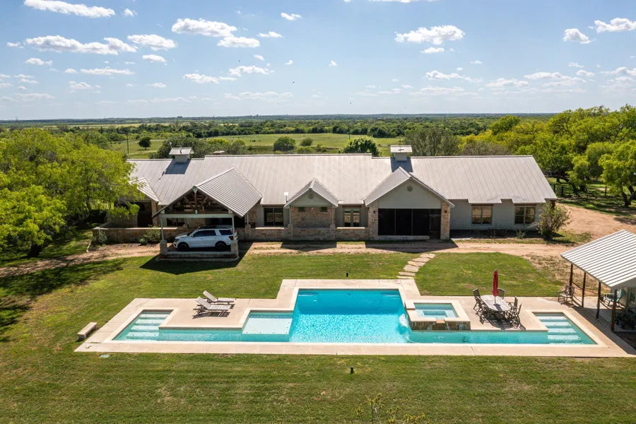 The Runge River Ranch is one of the best live water ranches in the South Texas Plains Region. This majestic river front property is filled with dinosaur size native hardwoods and thick underbrush full of natural vegetation for the abundance of wildlife present throughout the ranch. It is well balanced with both native & improved pastures. The Runge River Ranch is crossed fenced into four sections with water troughs available within all the fences. A true sense of place originates amongst the meandering seasonal creek system that transverses through the back side of the ranch towards the gorgeous river frontage. The ranch exhibits rolling terrain from front to back with over eighty feet of topography variation within the boundaries of the Runge River Ranch. The homestead on the ranch consists of a one-story rock home with plenty of room to live and/or entertain family and friends. The back porch of the main home presents a peaceful and panoramic view of the countryside. Enjoy the seasonal sunsets along side the exterior fireplace peering out towards the panoramic views of the river valley. Also present on the ranch is, a cozy and adorable guest house, a pool house, a pool & hot tub, one main barn and an equipment barn. The RRR is truly an outdoor enthusiasts and cattlemans dream ranch!