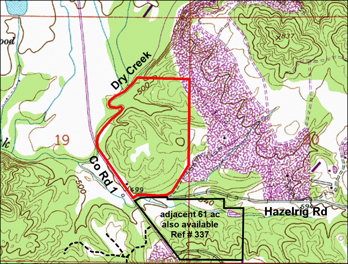 From I-20/59 Exit #134, take AL Hwy 75 north toward Oneonta for 25.9 miles. Take a left at Blount Co Road 1 and go 5.8 miles to Hazelrig Rd on the right. From here, property fronts on north side of Hazelrig Rd for about 800 and on the east side of Co. Rd. 1 to Dry Creek (about mile). Look for the Cyprus Partners sign. The intersection of Co. Rd 1 and Hazelrig Rd. is located at Lat: 33 58 22.2N.; Lon: 86 34 20.8 W.