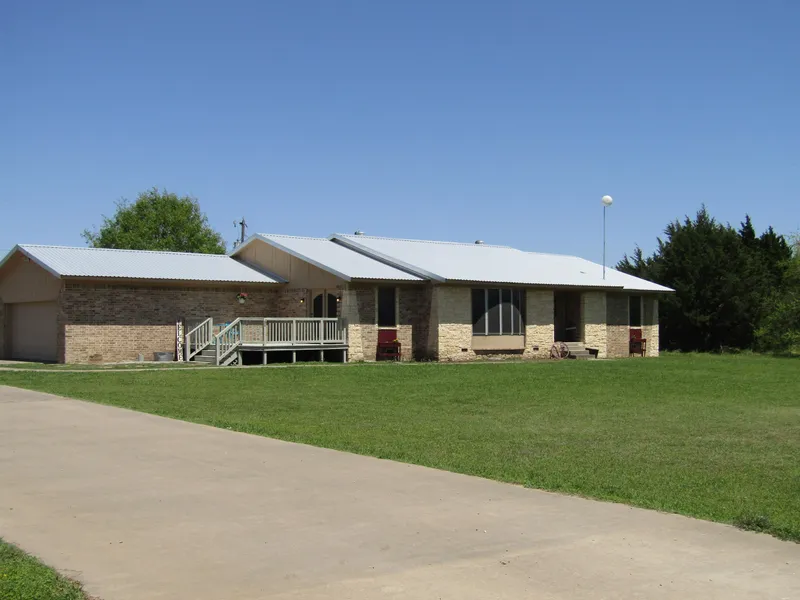 Motivated seller. Adorable 3 bedroom, 2 bath home, sitting on 1.299 acres, Brick and stone exterior with deack on front side porch, covered porch with wood deck on the back for your early morning or summer evening enjoyment. Ceramic tile flooring in the kitchen and bathrooms, carpet installed 3 years ago, 2 large living areas, ceiling fans, gas log fireplace, 2 yr old metal roof, Information deemed reliable but not guaranteed, buyer and buyer's agent should verify all information. Outside play equipment and all curtains excluded.