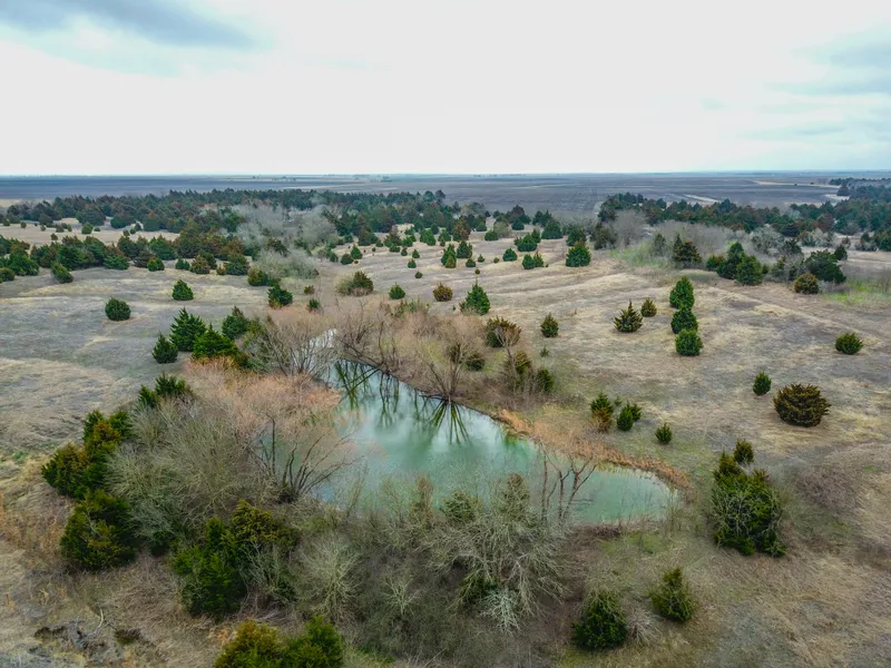 Nice-sized pond with gently rolling land that creates a beautiful landscape as well as attractive draw to the wildlife including whitetail deer, hogs, and more