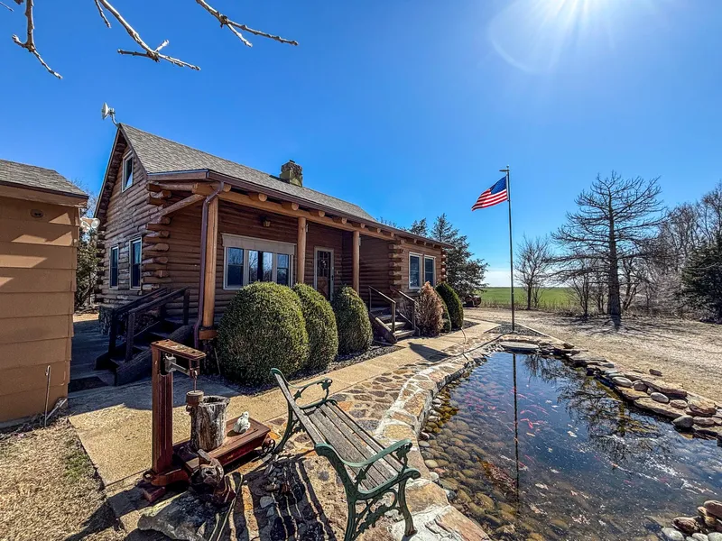 Natural light floods the interior through all the windows of this log cabin, creating a bright and welcoming setting. Just off the front deck there is a beautiful Koi pond with a rock waterfall, enhancing the outdoor experience. Additionally, this home offers a variety of different storage spaces, central heating and air, a propane-fueled kitchen stove, an outdoor firepit, and a detached oversized two car garage. A few recent upgrades include a new Cutler Hammer breaker box and a new roof scheduled for installation this spring. Fiber internet installation is also underway, ensuring modern and upgraded internet connectivity. The back +/- 2 acres is made up of mature trees, thickets, and native grasses, serving as an ideal habitat for local wildlife, including deer, quail, pheasants, and occasional turkeys. Give the listing agent a call before this beautiful home is gone!